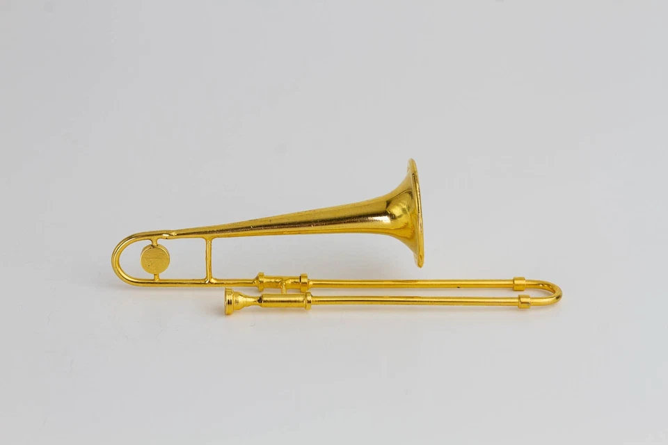 Miniature Trombone 3 1 4 034 Instrument Prop Model 1 12 Scale Metal With Case Ebay